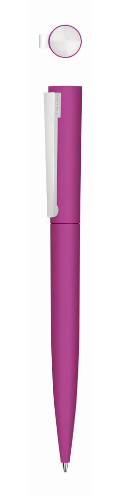 0-9610 GUM BRUSH: Metall Drehkugelschreiber mit matt gummiertem farbigem Gehäuse, Metallclip und Stopfen matt verchromt. Mindestbestellmenge: 300 Stk.