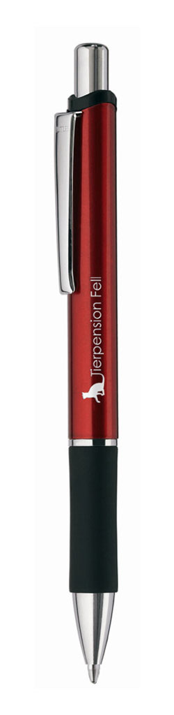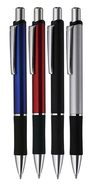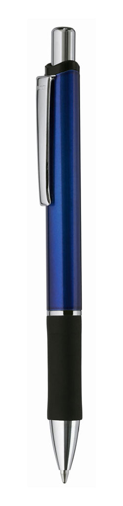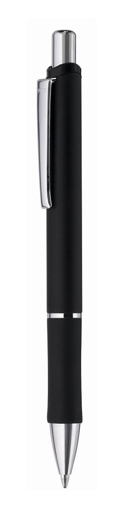 0-9438: Druckkugelschreiber mit lackiertem Aluminium-Schaft, schwarzer Gummigriffzone und Metallclip. Mindestbestellmenge: 300 Stk.