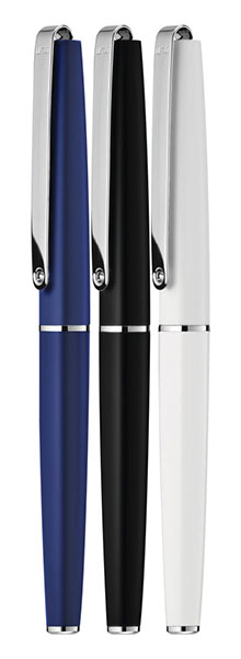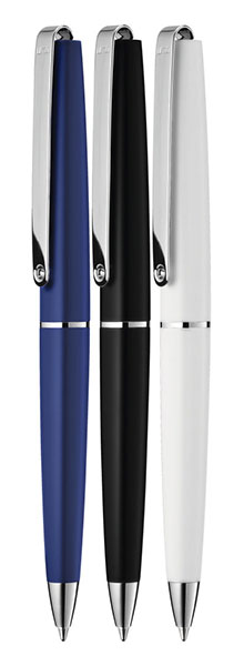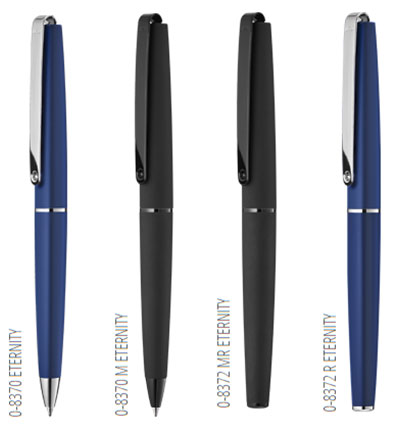 0-8370: Metall-Drehkugelschreiber mit Softdrehmechanik, glänzendem Gehäuse, langem, flexiblem Metallclip, Zierring und Spitze glanzverchromt. 0-8370 M: Metall-Drehkugelschreiber mit Softdrehmechanik, matt lackiertem Gehäuse, langem, flexiblem Metallclip, Zierring und Spitze schwarz glänzend. 0-8372 MR: Metall Rollerball mit matt lackiertem Gehäuse, langem flexiblem Metallclip, Zierring und Stopfen schwarz glänzend. Griffzone gerillt in schwarz glänzend. 0-8372 R: Metall-Rollerball mit glänzendem Gehäuse, langem, flexiblem Metallclip, Zierring und Stopfen glanzverchromt. Griffzone gerillt in glanzchrom. Mindestbestellmenge: 300 Stk.