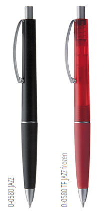 0-0580: Druckkugelschreiber mit Gummigriffzone und geschwungenem Metallclip. Schaft und Griffzone unifarben. Drücker, Zierring und Spitze in matt silber. 0-0580 TF frozen: Druckkugelschreiber mit transparent gefrostetem Schaft und Gummigriffzone. Geschwungener Metallclip. Drücker, Zierring und Spitze in matt silber. Mindestbestellmenge: 1.000 Stk.