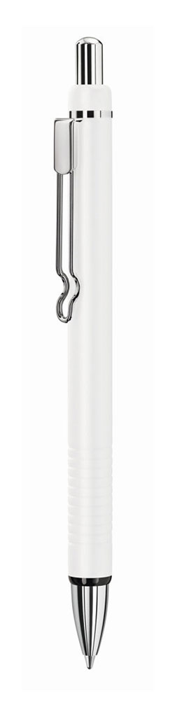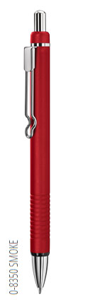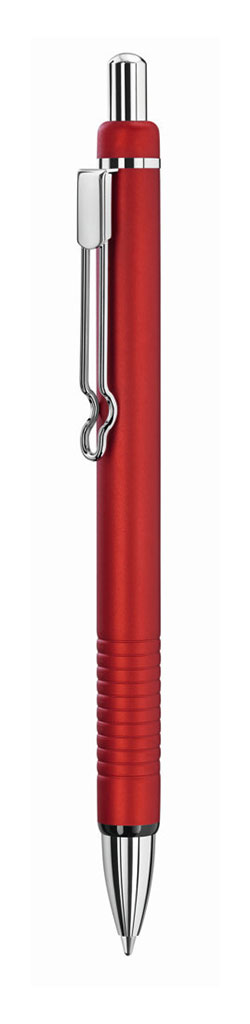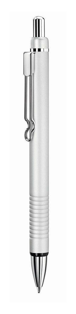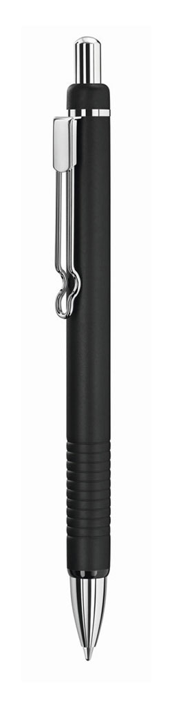 0-8350: Metall Druckkugelschreiber mit matt lackiertem Aluminium-Schaft und integrierter Griffzone. Metallbügelclip und Beschläge glanzverchromt, Zierring schwarz. Mindestbestellmenge: 300 Stk.