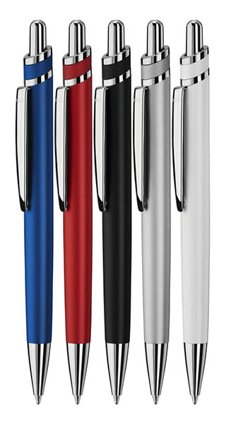 0-9412: Metall Druckkugelschreiber mit glanzverchromten glänzenden Beschlagteilen und matt lackiertem Aluminium Schaft. Mindestbestellmenge: 300 Stk.